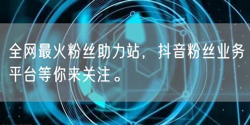 如果你想要快速提升抖音粉丝数量,成为社交媒体上的热门人物,那么赶快关注全网最火的粉丝助力站——抖音粉丝业务平台吧!我们将为你提供最专业的服务,让你的梦想成为现实!