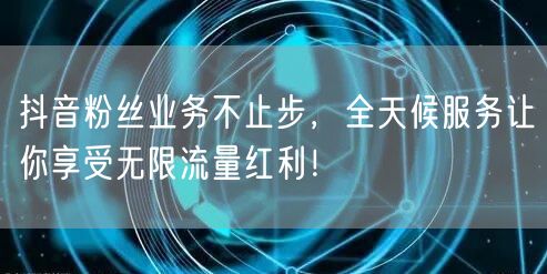 总之,抖音粉丝业务不止步,全天候服务引领无限流量红利时代!让我们抓住这个机遇,共同创造更美好的未来!