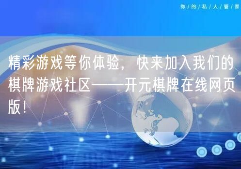 精彩游戏等你体验,快来加入我们的棋牌游戏社区——开元棋牌在线网页版!
